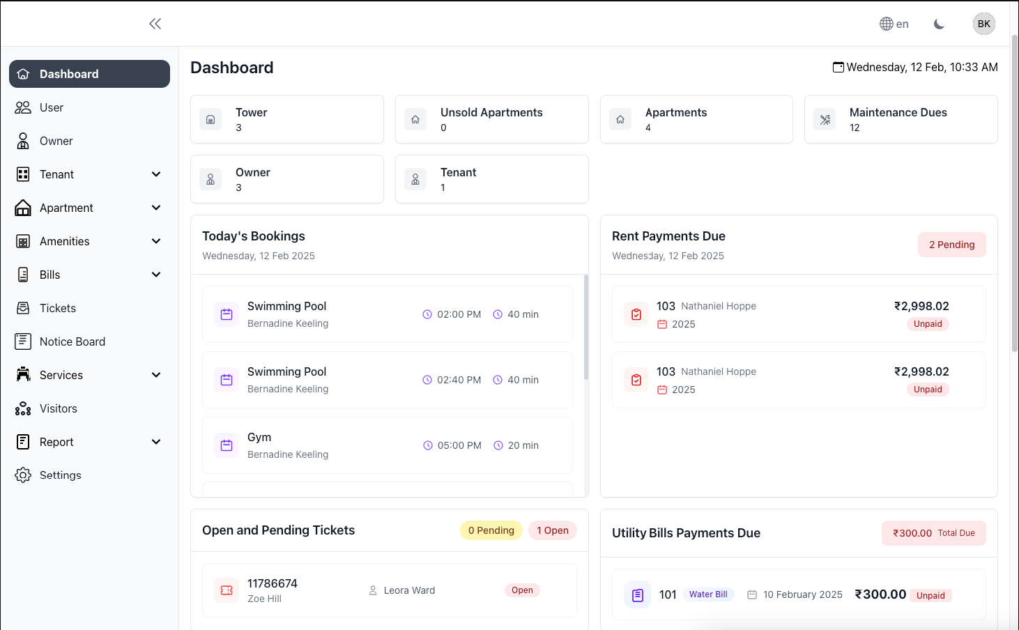 "This platform has revolutionized our society management process. Having everything from maintenance to resident services on a single dashboard has significantly improved our operational efficiency."